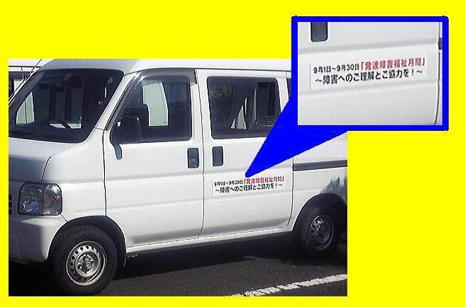 今日、とある地方を歩いていた時のことです。ちょっと遠くの方に、総選挙が終わった街中を街宣車が走っておりました。スピーカーごしに何やらアピールをしているようです。特に気にも留めず歩いていた殿父の耳に響いてきたのは「・・・ 発達障害に・・・ お願いします!」 の声。思わず足を止め、街宣車を眼で追ってしまいました。アピールの中身は” 9月は『発達障害福祉月間』です。発達障害への理解と協力をお願いします ”というもの。こんな街宣カー、はじめて見ました。