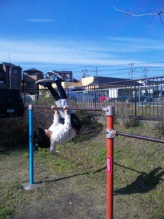 春休み突入。今日は土曜日ですが、パパが出勤したので、3人で散歩。二人連れて行楽地は行けないけど、近所の川沿い散歩なら危険も少ないしOK。花たち。 びっくりしたのが、コトがこんな逆上がりができるようになっていたこと。自分の背より高い鉄棒でした。私の運動神経から考えると驚愕。軽い・・・。うらやましい・・・。二人でバイク?の銅像でツーリング~。俺の後ろに乗れよ。しっかりつかまるんだぜ。って言ってないけどさっ。 よろしかったら応援のクリックをお願いします!