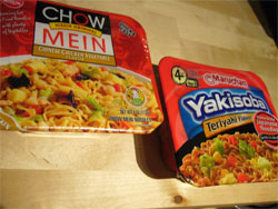 一方マルちゃんの製品はYAKISOBAとして売られており、味の想像がつかない人のためにテリヤキ・フレーバーと書いてはあるのだが、実際にはソース焼そばの味に近い。難を言えば日本のものより少し甘みが強いといったところだろうか。しかし僕にとっつてはこのマルちゃんがカップ焼そばの味であり、日清のチャウメンはとんでもなく奇想天外な味なのだ。
