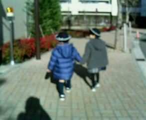 今日はバレンタインデー。ツヨも初めてチョコをもらいました。もちろん義理ですが、義理ってありがたい。ツヨはチョコ食べないので、もう、私の胃袋の中。さて今日の朝と帰りのひとコマ。どちらも右コト、左ツヨ。かなり背の差がありますね。いつもは私の脇で、目をつぶったり、へばりついたりしてドキドキしながら歩くツヨですが、今日はコトと手つなぎ。堂々と歩きました。 よかったら応援のクリックをお願いします! ↓